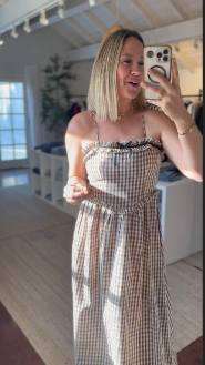 The 100% cotton Jenna Plaid Dress brings playful charm and timeless style together in one effortless piece. With its soft plaid print, dainty adjustable straps, and flowy silhouette, it’s perfect for Sunday strolls and sweet get-togethers. Dress it up with wedges or keep it casual with sneakers for a look that’s easy, happy, and so you!