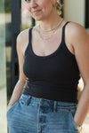The Taylor Spaghetti Tank is a closet staple you’ll want to reach for everyday! Designed with a soft, stretchy ribbed knit and a flattering scoop neckline, it hugs just right while still feeling comfortable and breathable. Perfect on its own or layered under your favorite pieces, this tank is an easy essential for everyday wear, season after season.