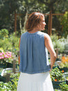 The Arlow Blouse is the perfect denim blouse for sunny days and easy summer styling. Designed with a lightweight chambray feel, sleeveless silhouette, and button-front detail, it brings a timeless look with a breathable feel. The relaxed fit makes it easy to wear tucked in or left loose with denim, skirts, or linen bottoms. A versatile staple you’ll reach for all season long!
