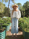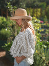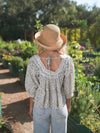 The Darla Cotton Blouse has that sweet vintage-inspired charm you’ll reach for again and again. This version features a delicate mini floral print with a lace-trimmed neckline, front tie detail, and a relaxed gathered silhouette that feels light and easy to wear. The soft shape creates beautiful movement while the airy cotton feel makes it perfect for everyday moments. Wear it to the farmers market, brunch with friends, weekend errands, or a sunny afternoon out. Pair it with your favorite denim for a timeless look that always feels special!