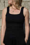 Addie is that perfectly simple tank you’ll reach for again and again. Designed with a flattering square neckline and a soft ribbed knit, it hugs just right while still feeling comfortable and easy. The wide straps make it super wearable on its own or layered under your favorite jackets and cardigans. A true everyday staple you can dress up or keep casual.